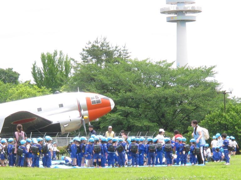 航空博物館前の広場に遠足の子供たちが集合です。可愛い女の先生が「お弁当は未だですよ〜!」って叫んでました。キャワいい!!!思わず「ハ〜イ」って返事をしちゃいました。