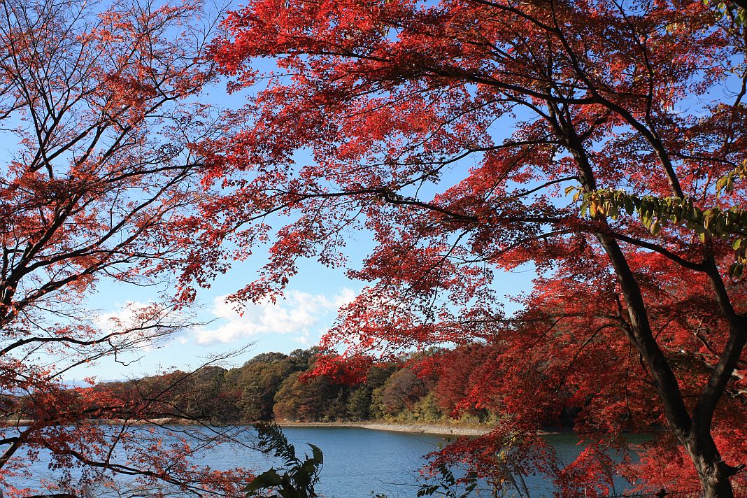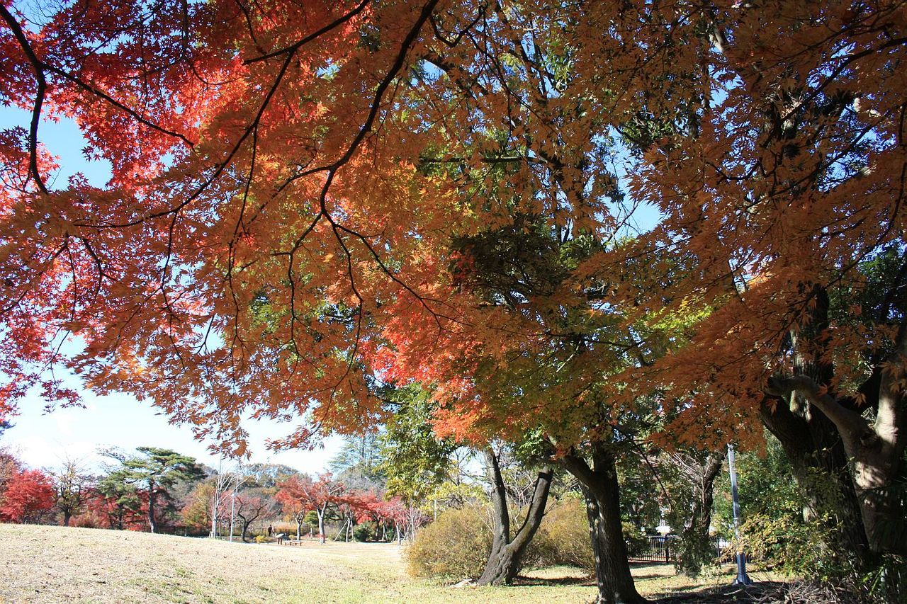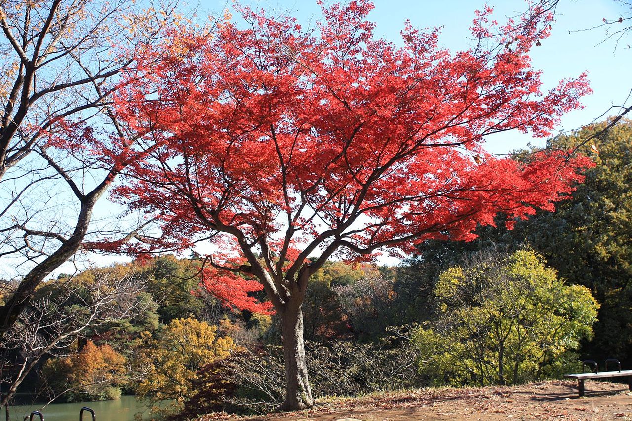 狭山公園の紅葉が目に鮮やかに飛び込んで来ます。