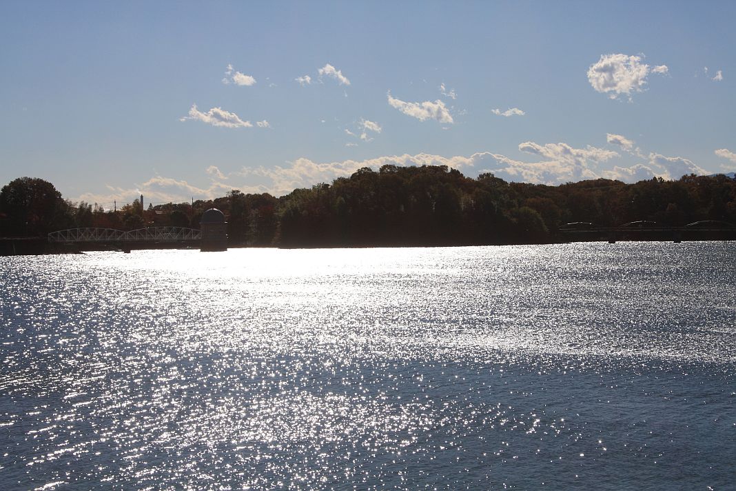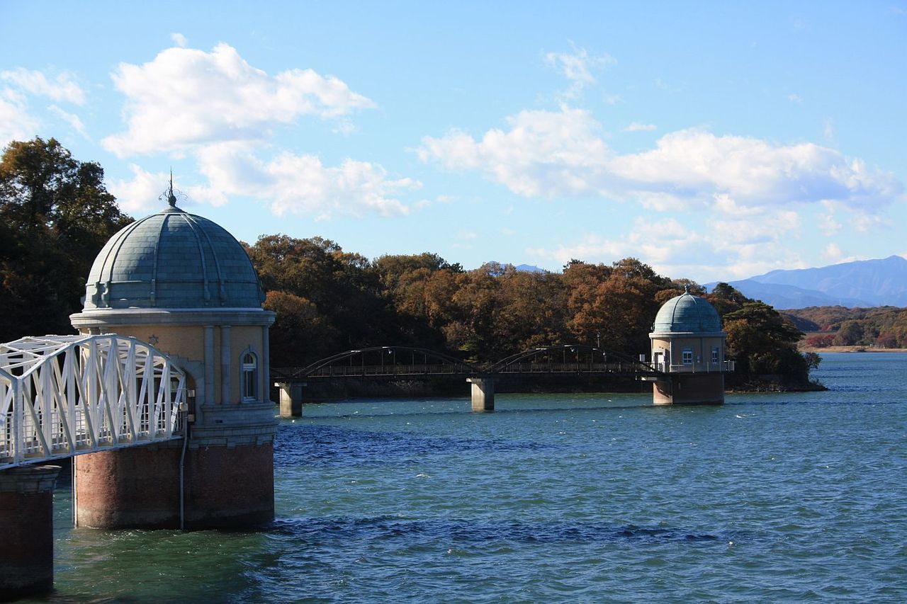 風の強い日は、湖の景色が澄んでいるような気がします。取水塔もくっきりとしてます。