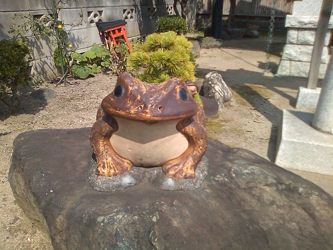スーパーに歩いていくと・・・、おや?(^^)? ここはお稲荷さんの筈ですが・・・、何で蛙なんでしょう。