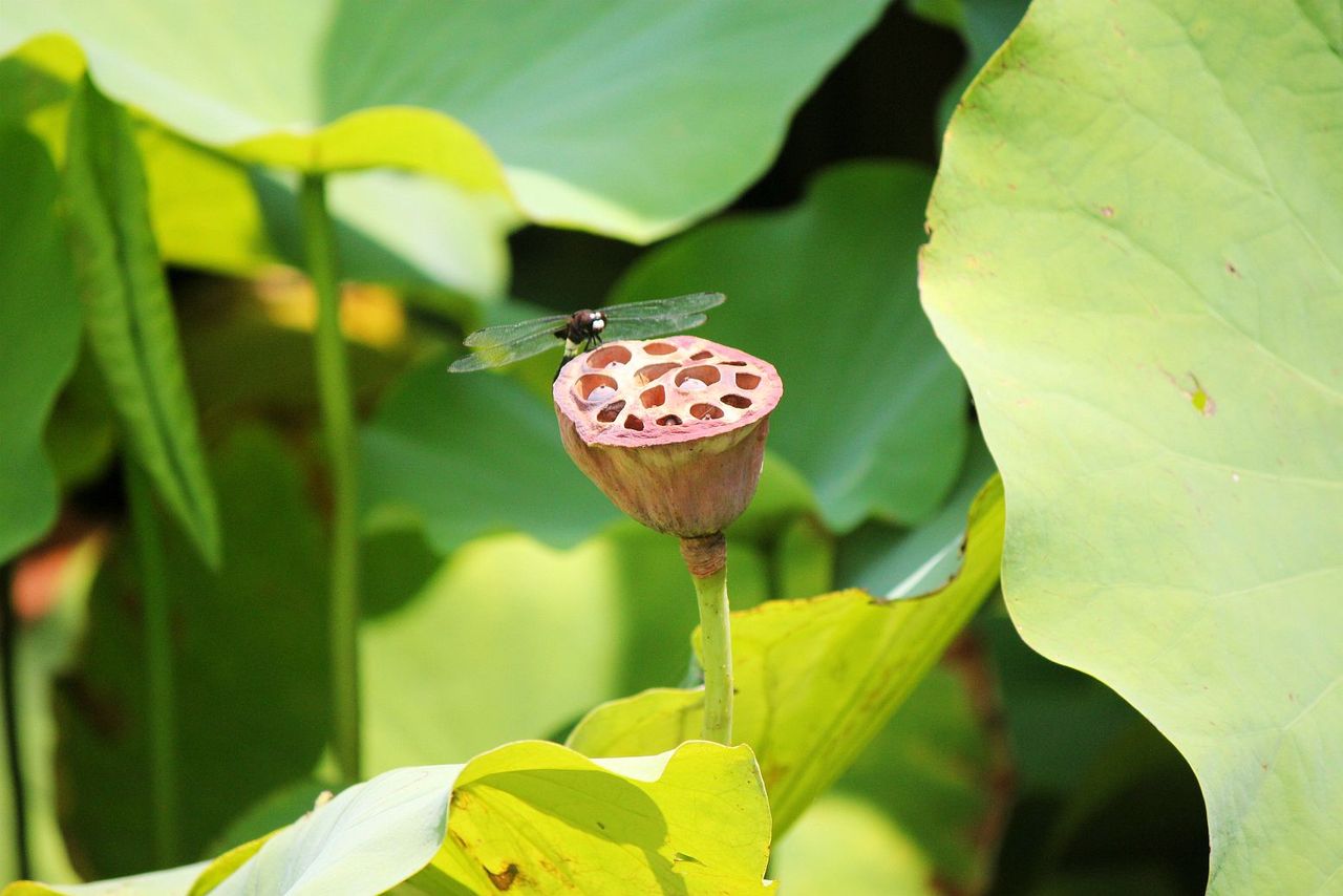 − 如雨露(じょうろ)の口は「蓮口(はすくち)」と呼ぶそうです。蓮根(れんこん)の切り口から由来しているのでしょうか。蓮根は蓮の根です。蓮の実の付く部分もシャワーヘッドですよね。根か?実か?根実実に水か?複眼のトンボには、根から実まで貫く深い穴は、もうたくさんのズブズブなんでしょうね。