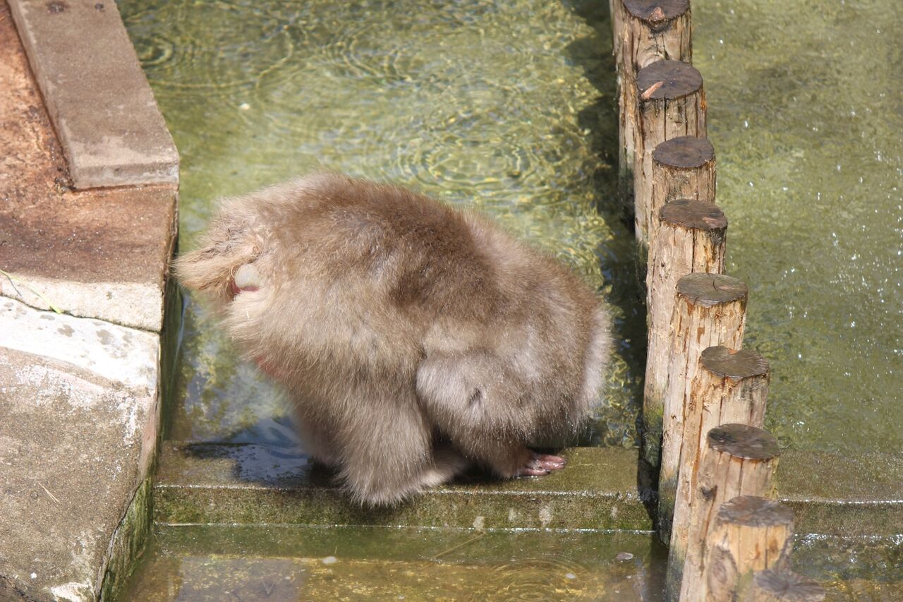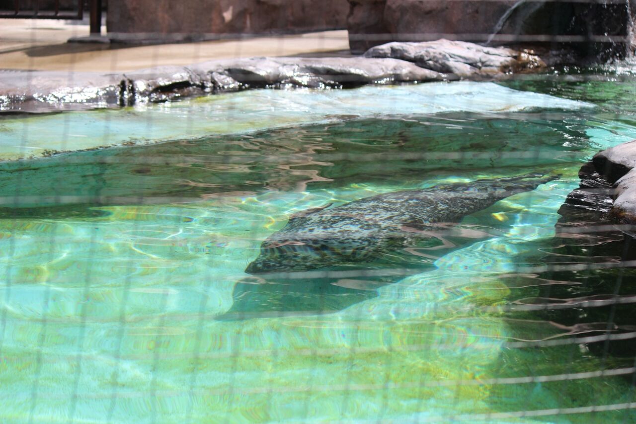 銭形海豹(ゼニガタアザラシ)。小滝の周りをうろうろ。飼育員のお姉さんにもうじき朝ごはんを貰う時刻です。キュートなお姉さんなので、しばらく待っていたのですが出てきてくれませんでした。残念 !(^O^)!