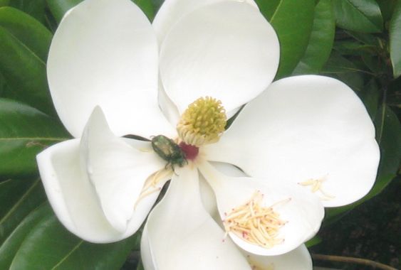 郵便局の帰り道、泰山木(だと思う)が大きな花を咲かせています。初めて見ました。大きな花ですね。