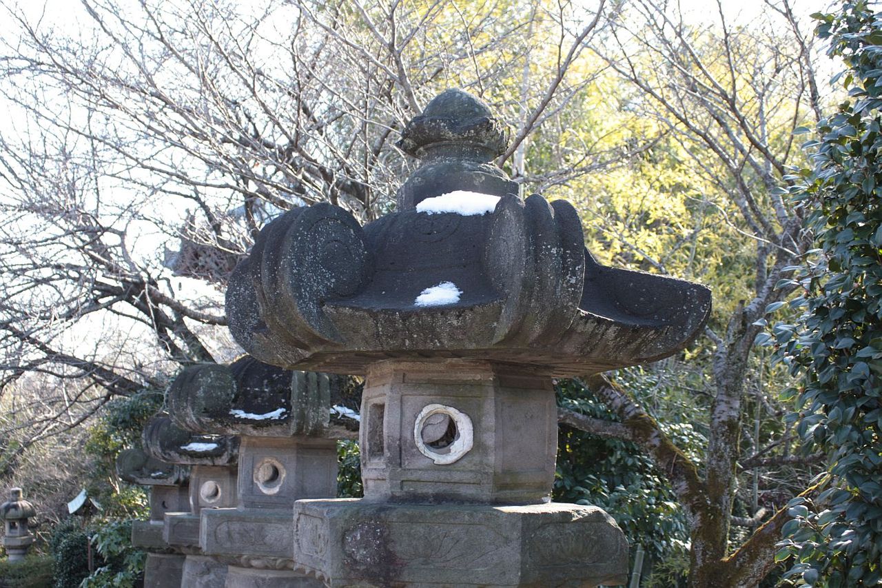 戻りは、狭山不動を抜けて行きます。灯篭の上に雪が残っています。