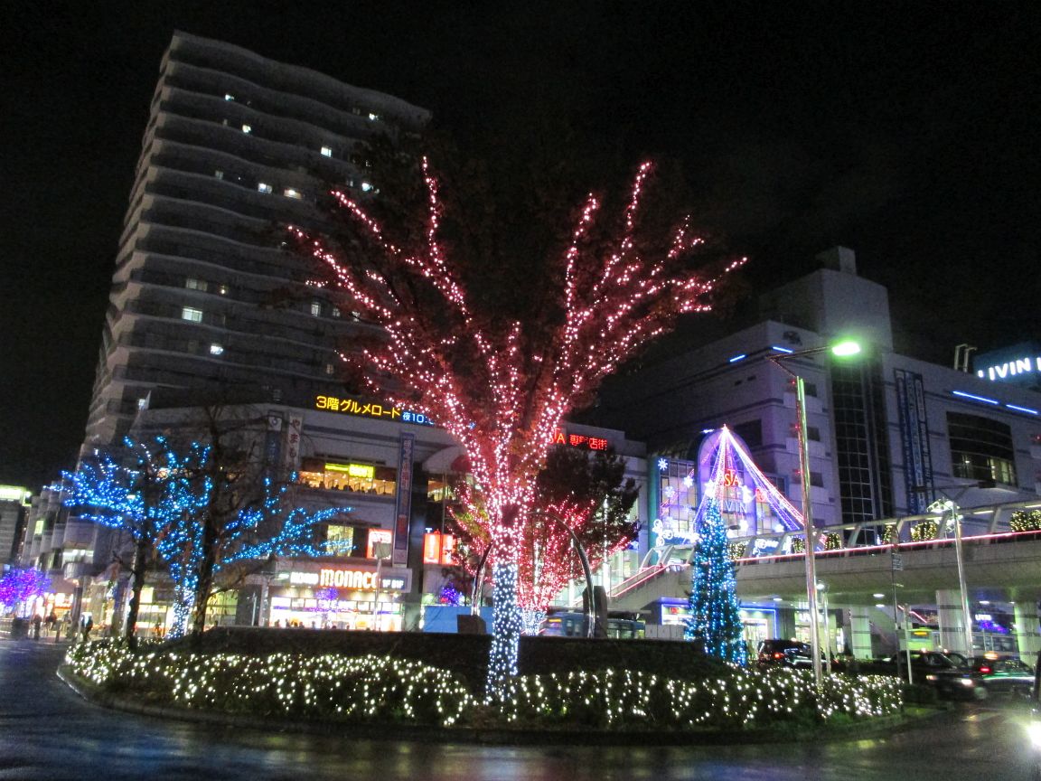 12月になりました。勤務先の最寄駅では、早速のクリスマスのイルミです。