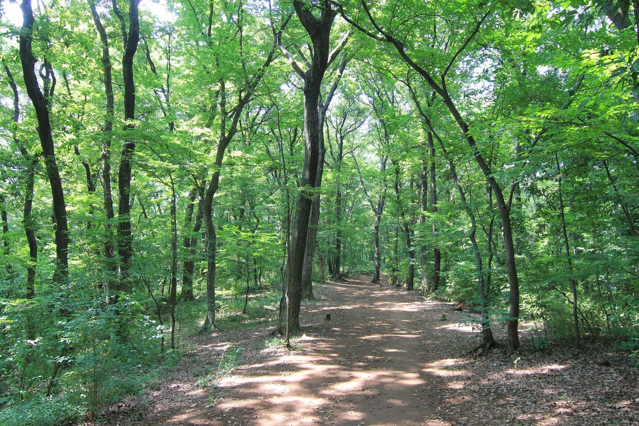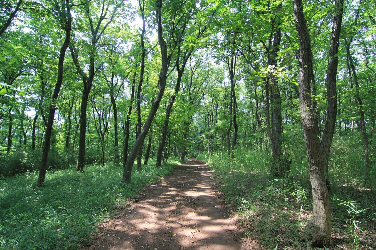 葉の生い茂る木々と強い陽射しが作る木洩れ日。美しい風景です。どの季節の木洩れ日も好きだけれど、夏には夏の佳さありますね。