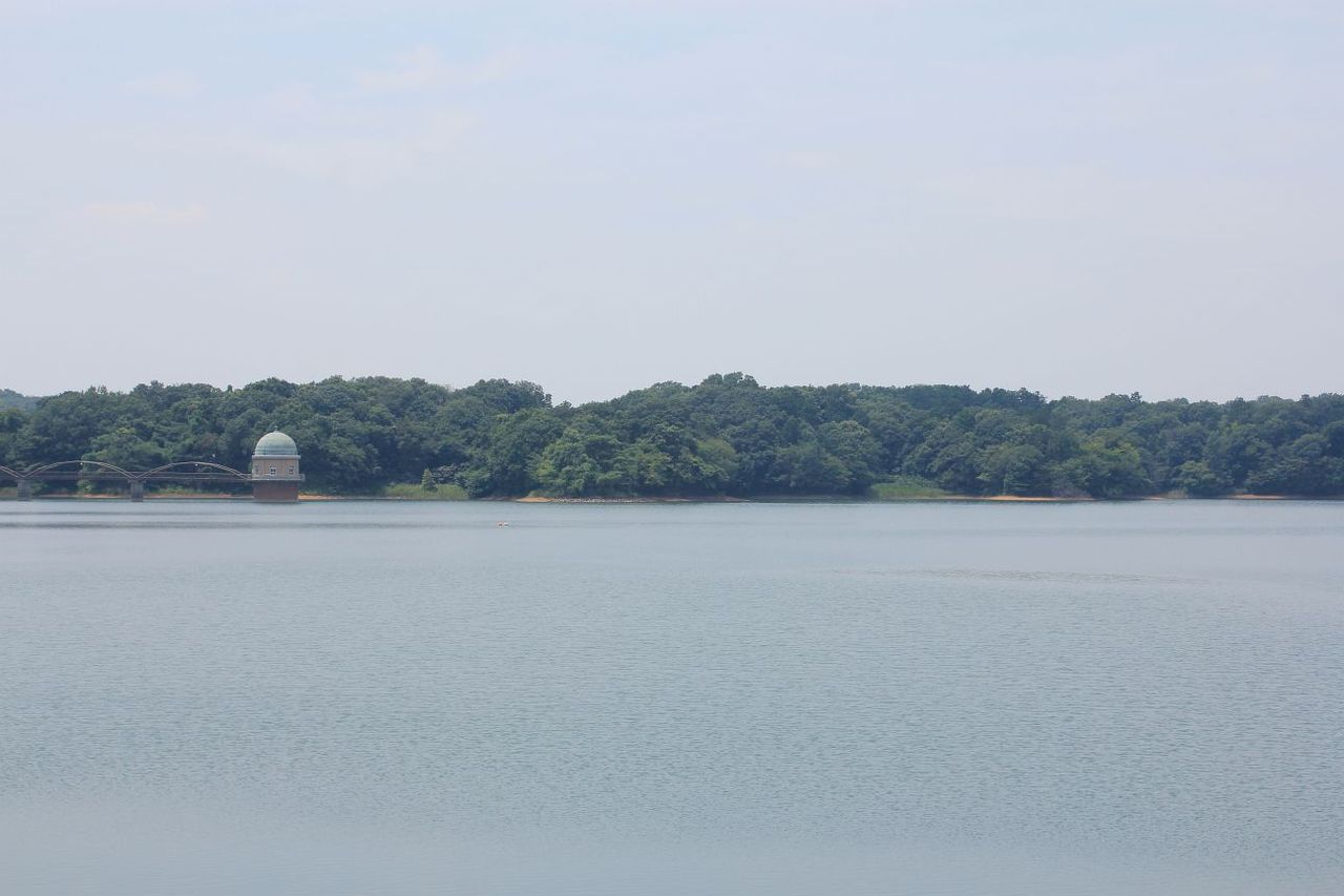 多摩湖です。湖沿いに歩いて、丘陵を下ります。