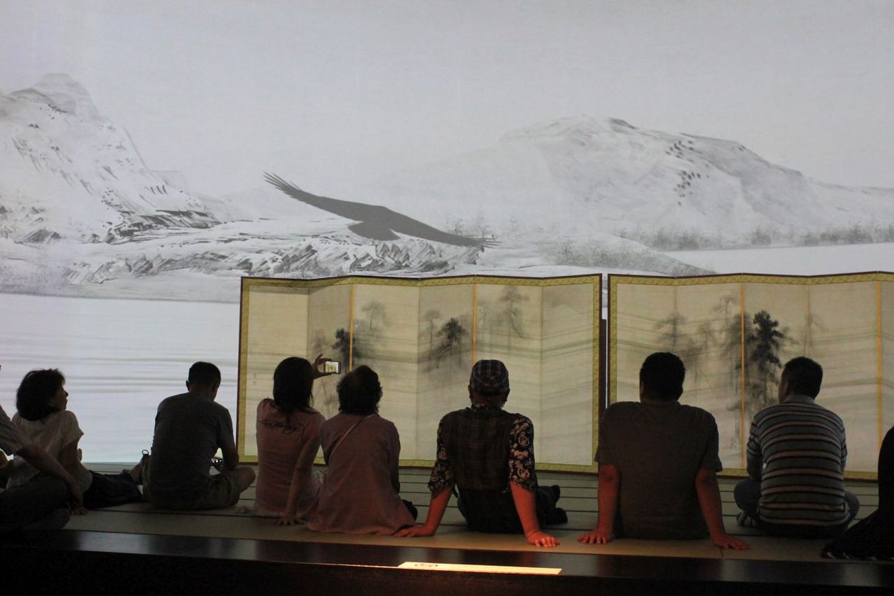 「屏風と遊ぶ」。等伯の松林図屏風は3回目。何度見ても面白い。観客が屏風の中に入っていく様子が、後ろから見ているとよく観察できます。