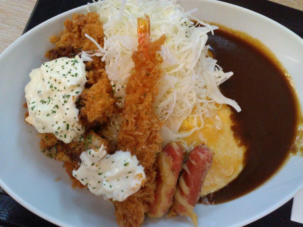 ご覧の通り、オムカレーに海老フライにタルタルチキンカツにウィンナーという、盛りだくさんの楽しいワンプレートです。お味は … 美味しいとは言えないけれど、楽しく食べられたから好しとしましょうヨ(2度と食べないでしょうが、断じて後悔はしてません)。値段が税込759円なんだから、多くを望んではいけまん。