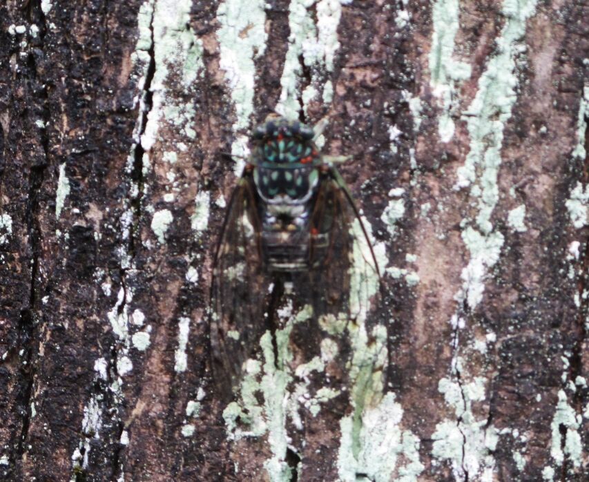 我家の真前の気にいつものように何匹もの蝉が鳴いています。目の前に居たのがこの一匹。木の模様と見分けがつきにくい?お腹を膨らませたり萎ませたりして、大声?で鳴いているのが健気?でした。
