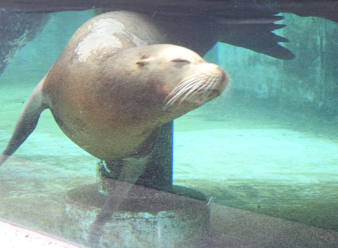 アシカさんは、いつものように愛嬌を振り撒いています … が出ているのはこの一頭だけ。ありがとう!一頭で充分ですよ。