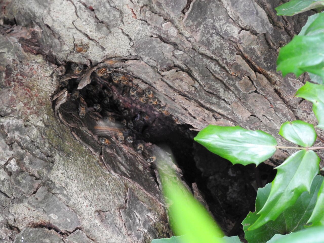 在来種の日本蜜蜂。「おとなしい性格で悪戯をしなければ刺されない」そうで「優しく見守って下さい」とのこと。そ〜〜と撮らせてもらいました (^O^)