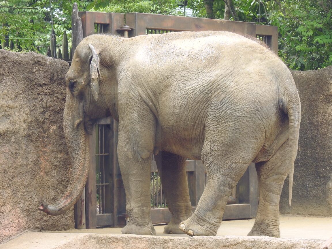 象さんも小屋の中に入りたがっています。このぐらいの暑さ(34℃)は平気なんじゃ … そうですよね!日本でず〜と暮らしてたら、暑さに弱くなりますよね。しかも、蒸し暑さだし。
