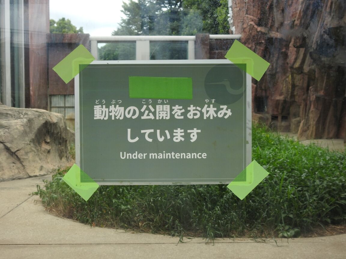 「ゴリラが見られない場合があります」の看板。「健康管理上の理由から、室内との出入りを自由にすることがあります」とのこと。そうだろうな〜。無理はいけません。人間に見せるのが目的ではなく、元気にしてもらって、そのついでに人間が見させてもらう、ってのが筋でしょう!