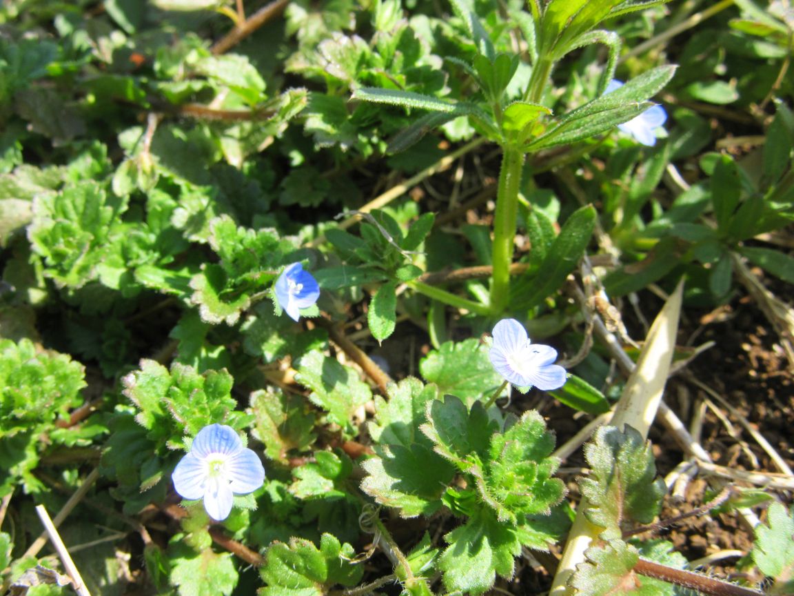 小さな青や赤の花。これ見よがしの花屋の花より美しい。