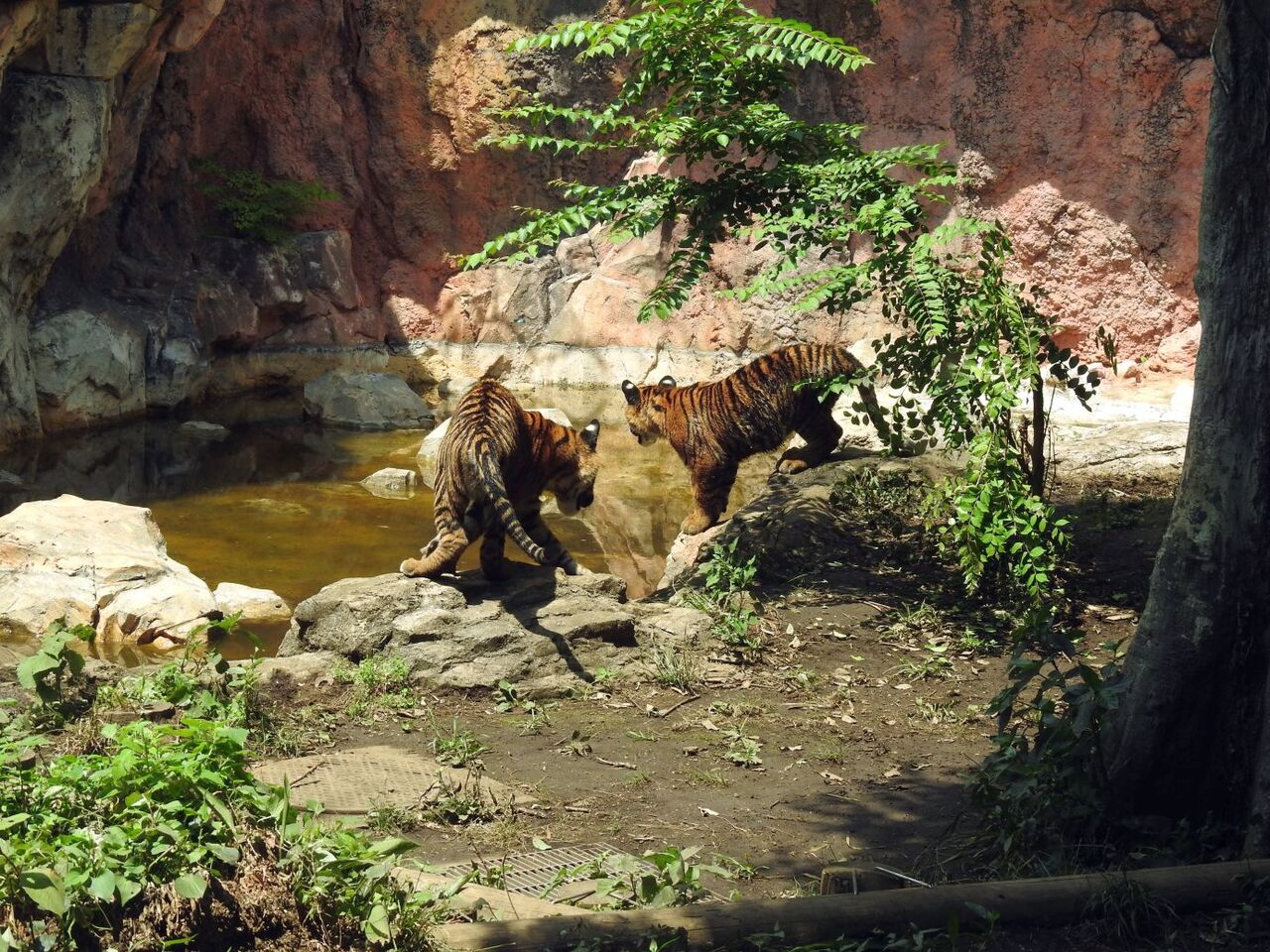 上野動物園(東京都)の、まさに「虎の子」の三頭です。春に生まれた小虎たちが、元気に走り回る姿に人気沸騰 (^^)/ 年パス持っているんですから、暑くくても見に行かなくっちゃ!