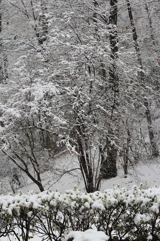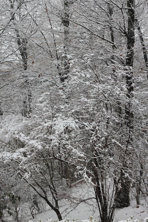 雪が積もり、ベランダの外は真っ白。写真でも、雪が降っているのが見えるでしょうか。