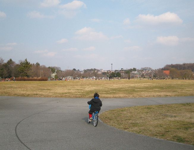 途中の公園で、男の子が自転車で遊んでいました。元気いいなあ。生禿も元気を貰いました。