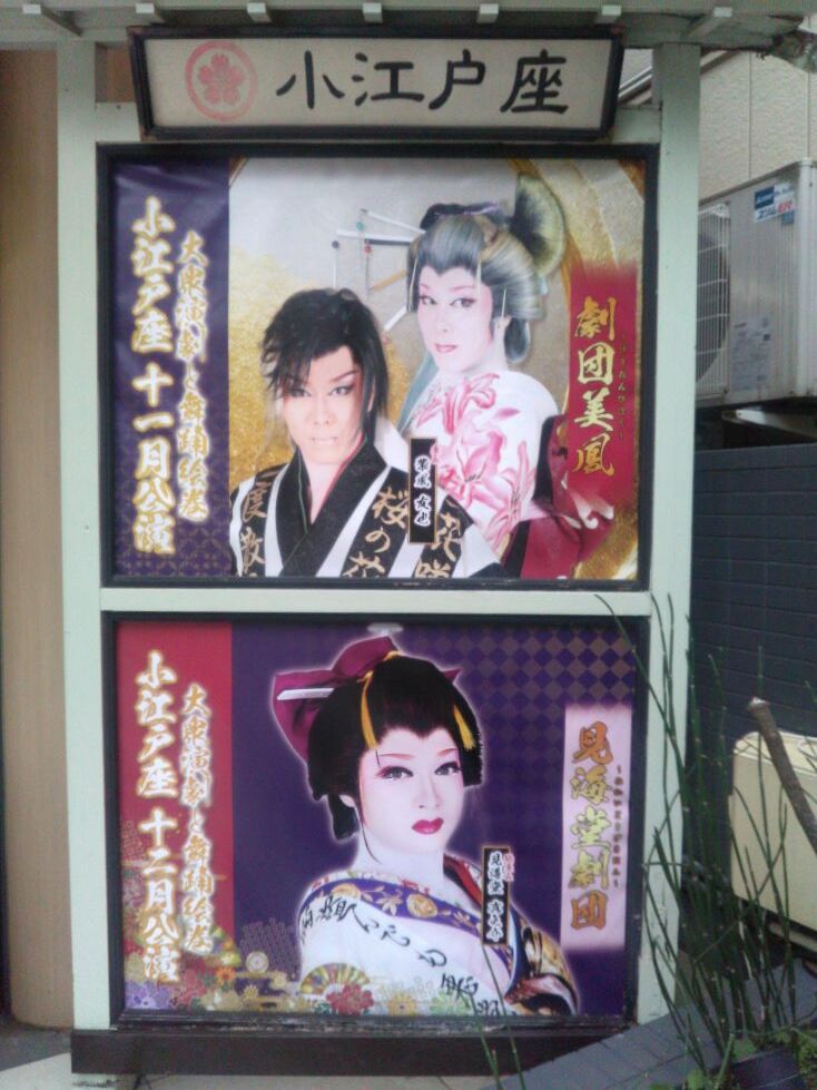 講義の帰り、川越の街をブラリ。大衆芸能のポスターを見上げながら、健全な大衆の力が育まれることを祈りました。
