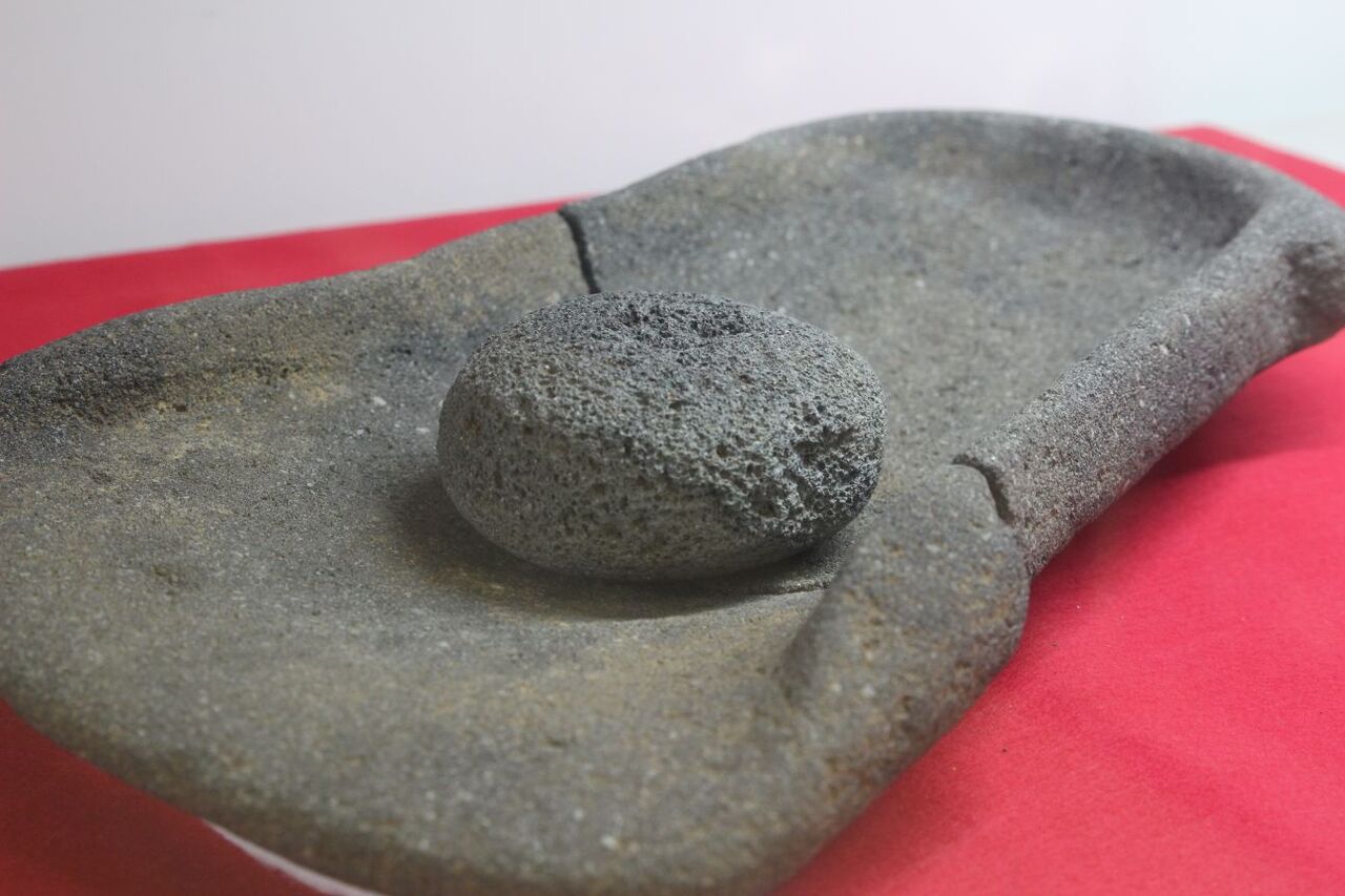 石皿と磨石。木の実などをすり潰す道具です。