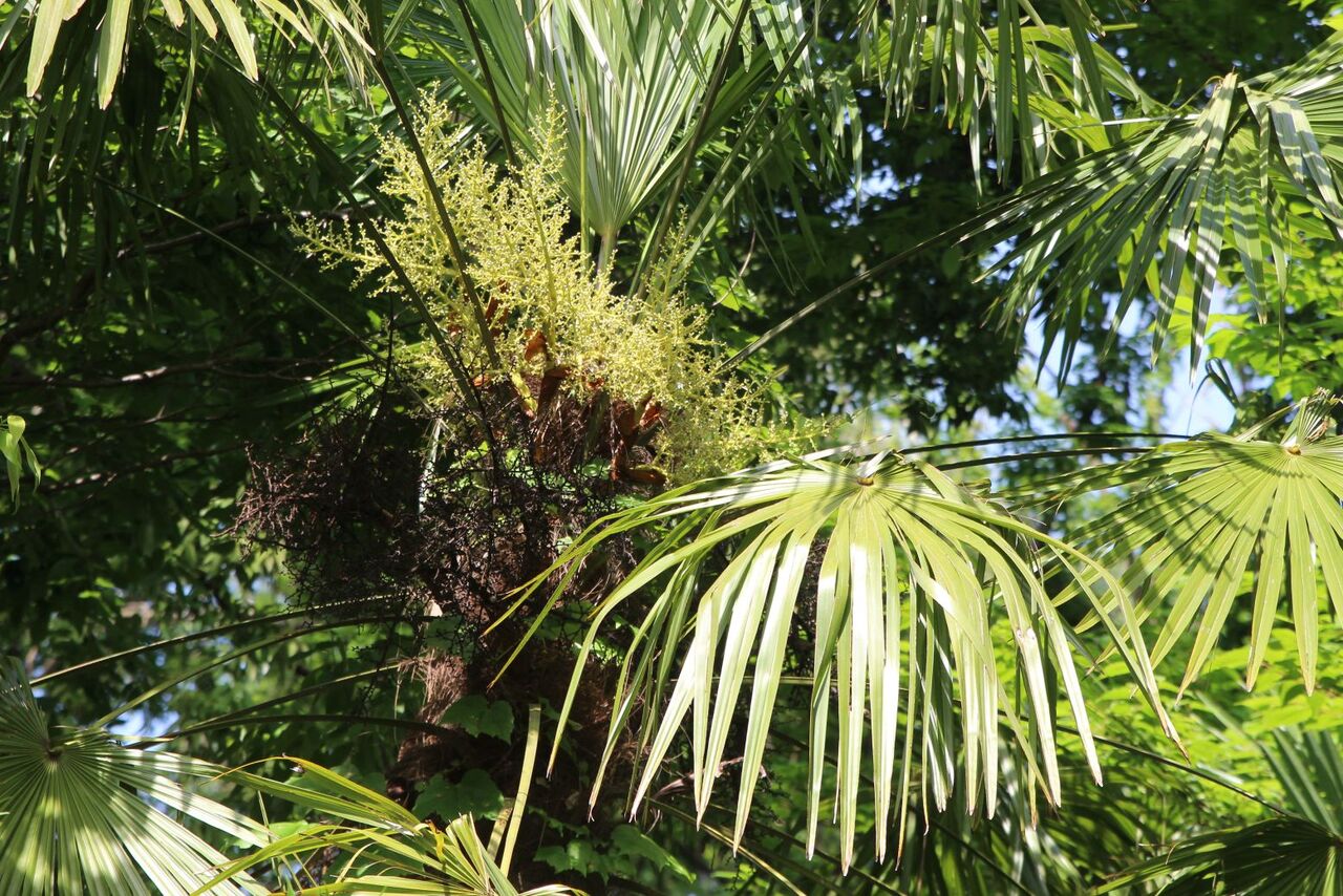 シュロが花を咲かせています。シュロの花って、最近よく見ますね。