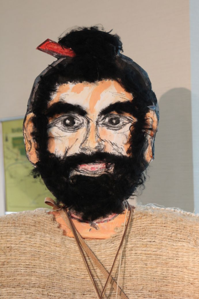 「八国山たいけんの里」の資料室の入口に。なんとも手作り感満載な縄文人ではあります。