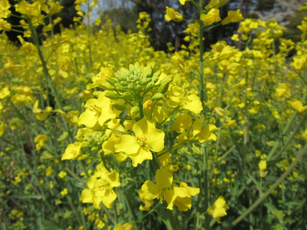 菜の花と椋鳥。暖かい公園でぬくぬくしています。
