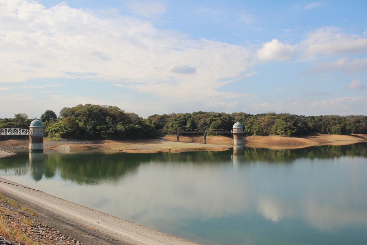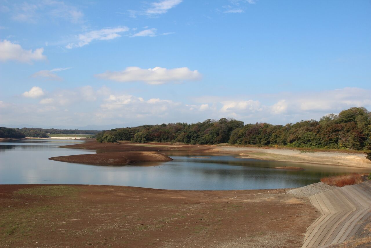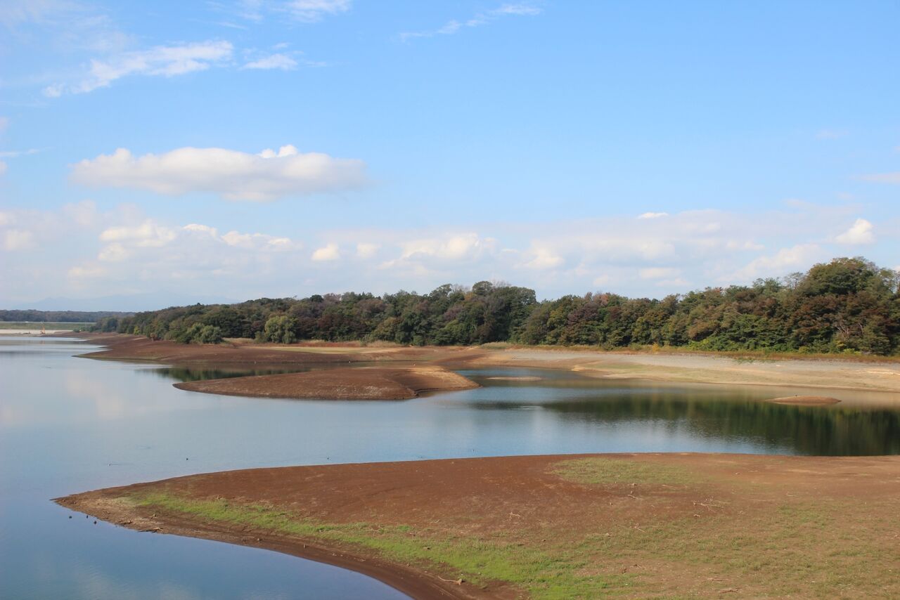 (水道局のHPからお借りしました)水道局のHPで調べたら、村山・山口貯水池の10月31日の貯水率は58.0%。やっぱり少ないんです。なのですが、多摩川水系全体では例年と大きな違いは無い。どうやら、村山貯水池の水位が低いのは、個別の要因のようです。水位を下げて何かをやっているのでしょうか?