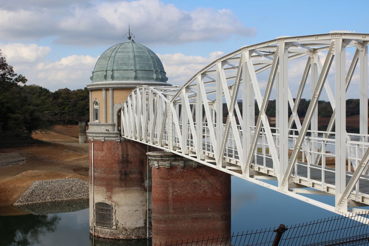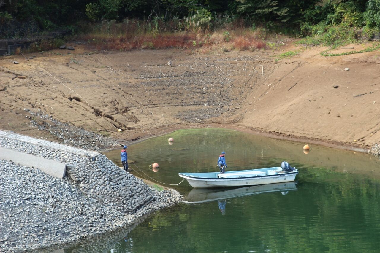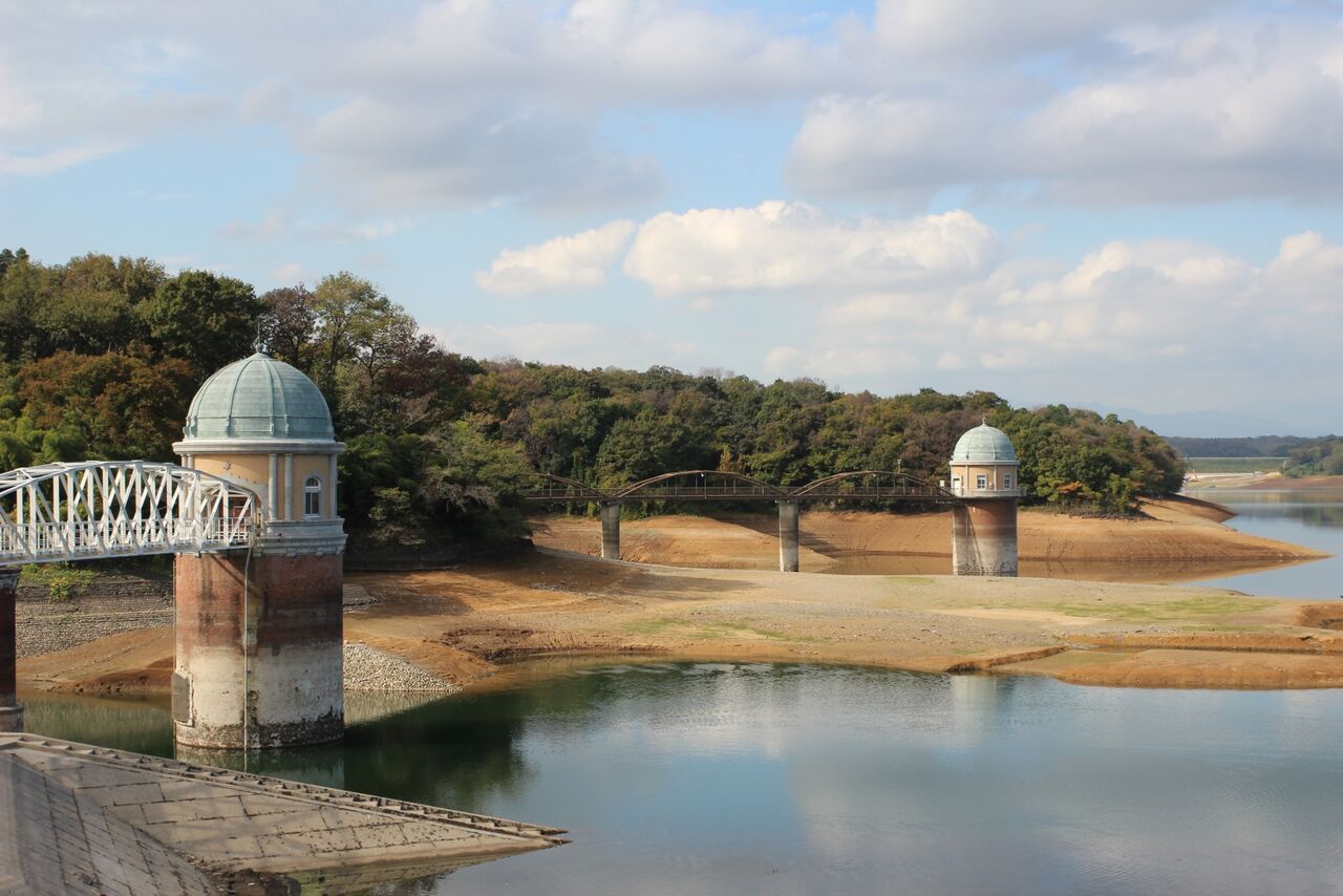 (水道局のHPからお借りしました)水道局のHPで調べたら、村山・山口貯水池の10月31日の貯水率は58.0%。やっぱり少ないんです。なのですが、多摩川水系全体では例年と大きな違いは無い。どうやら、村山貯水池の水位が低いのは、個別の要因のようです。水位を下げて何かをやっているのでしょうか?