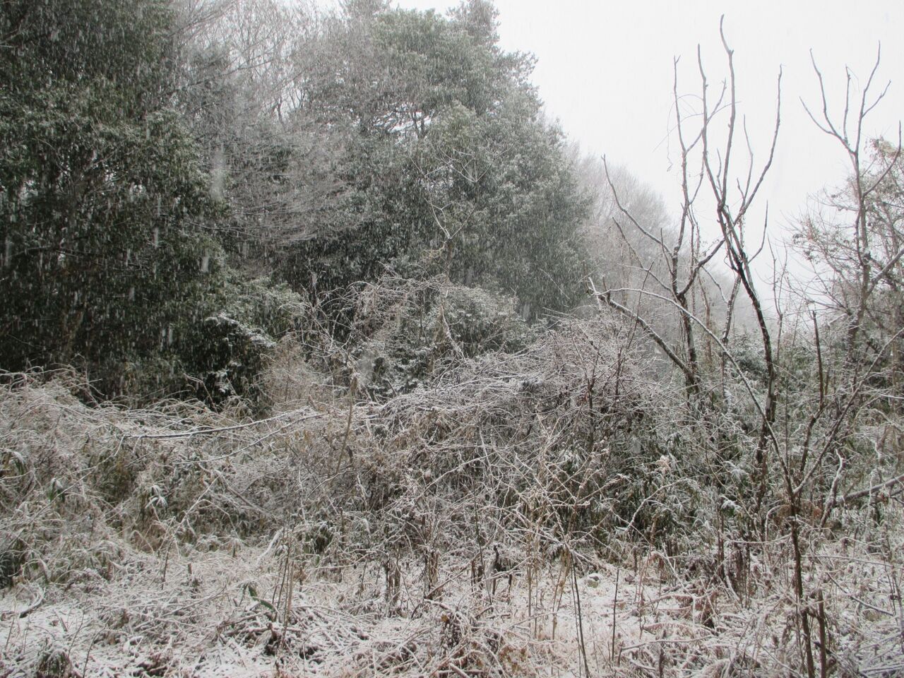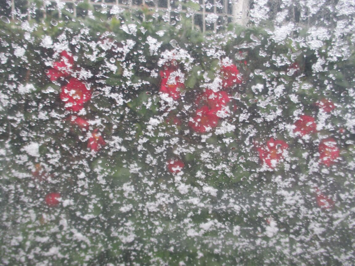 店を出ると、雪が降り始めました(2024/2/5)。あっという間に雪化粧。質雪で傘に積もって重くなり、山茶花も「雪曇り」です。