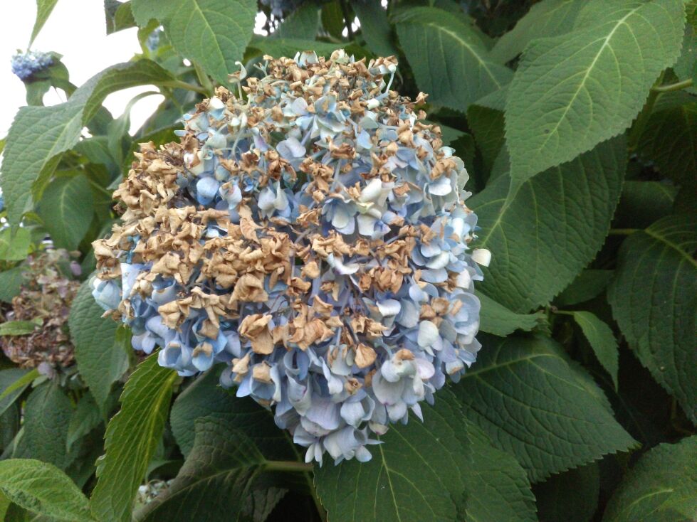 枯れた紫陽花。花じゃなくて額なので、枯れても「枯葉」の美しさがあります。紫陽花が好きな理由の一つです。