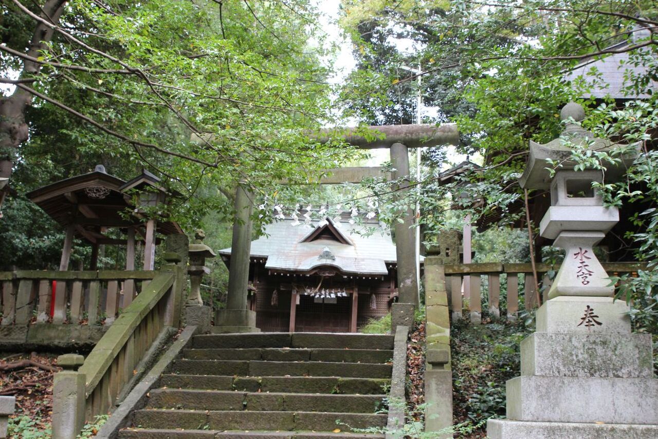 トトロの森を抜けて、久米水天宮。この季節は銀杏が落ちて臭います。