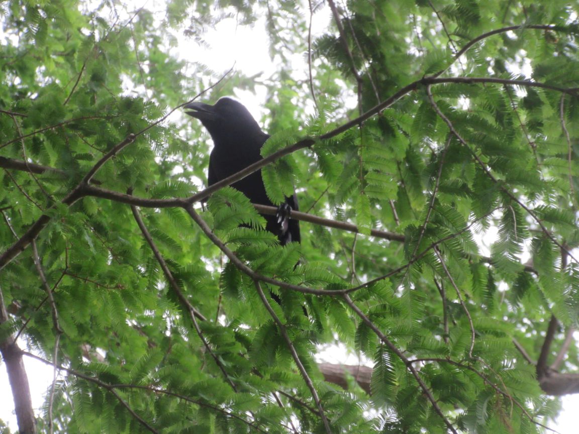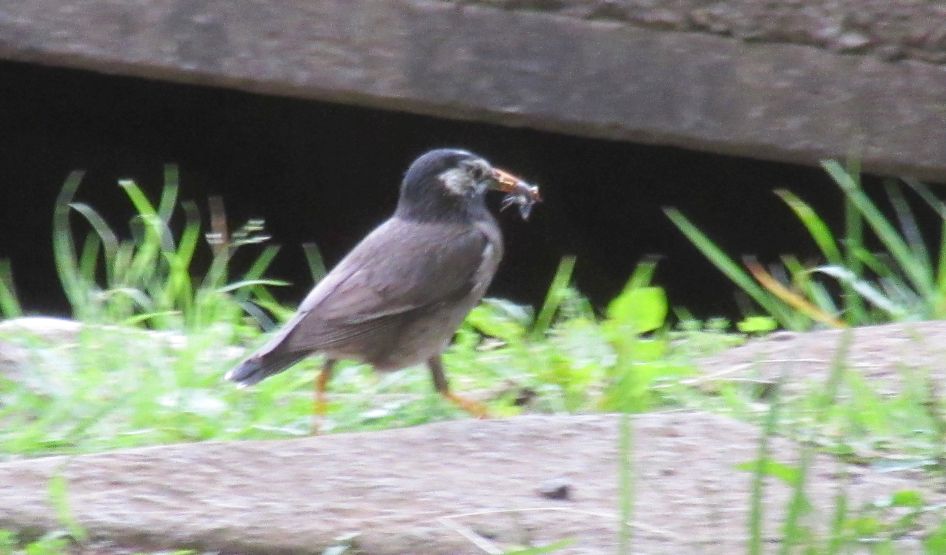 虫を捕まえた椋鳥。わがもの顔の烏。生きる力を感じます。