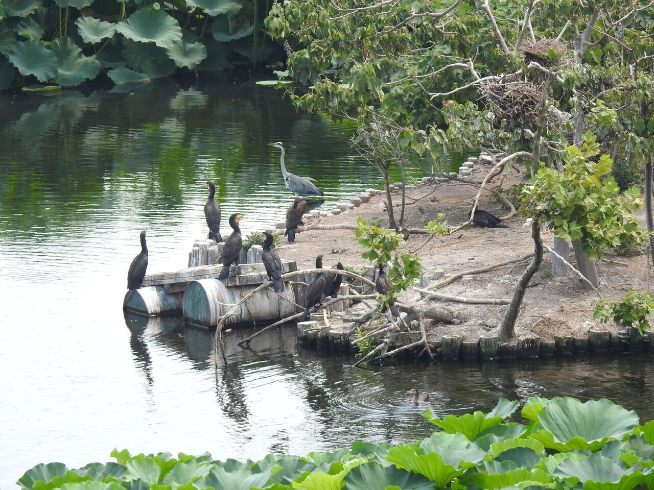 川鵜君はほとんど飛ばず、蒼鷺君も水の中で立っているだけ。暑すぎなんでしょう。