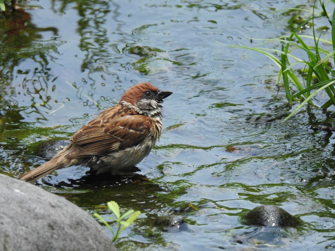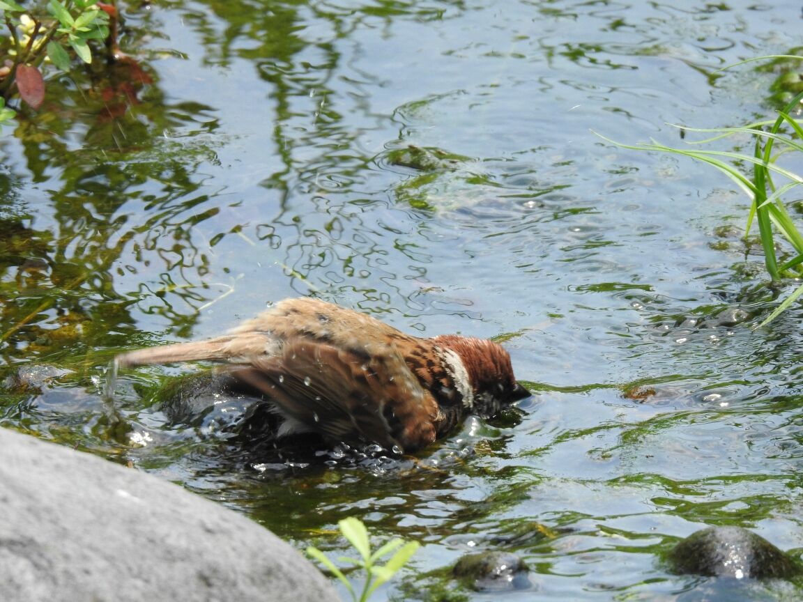 雀が池の水を飲んでいました。結構ダイナミックに飲むんですね。バシャバシャという音が聞こえそうでした。水飲みじゃなくて水浴びだったかも。