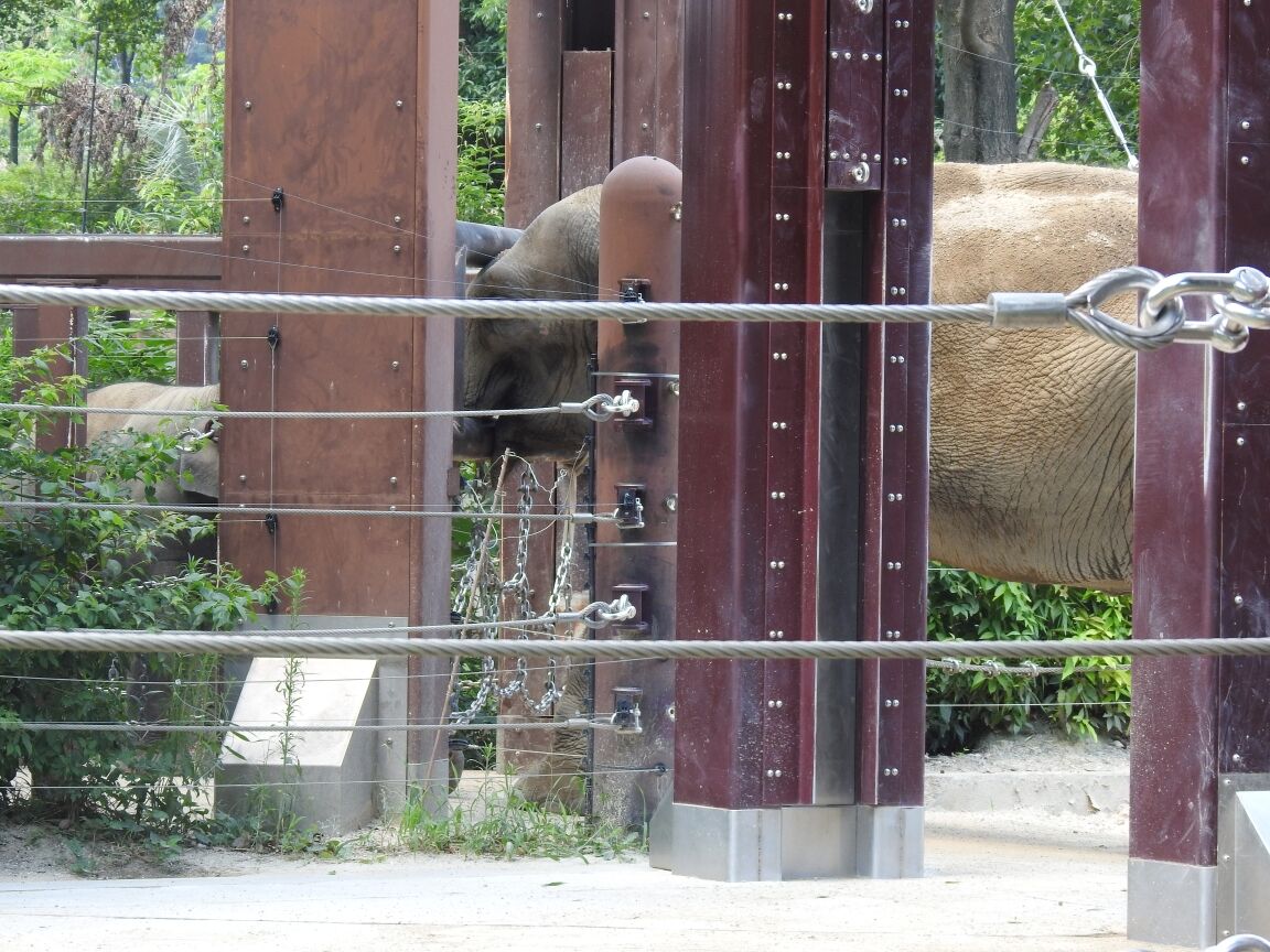 象さんの親子。なぜか扉のこっちと向こうで長い鼻で会話してました。独り立ちの訓練なんでしょうか?