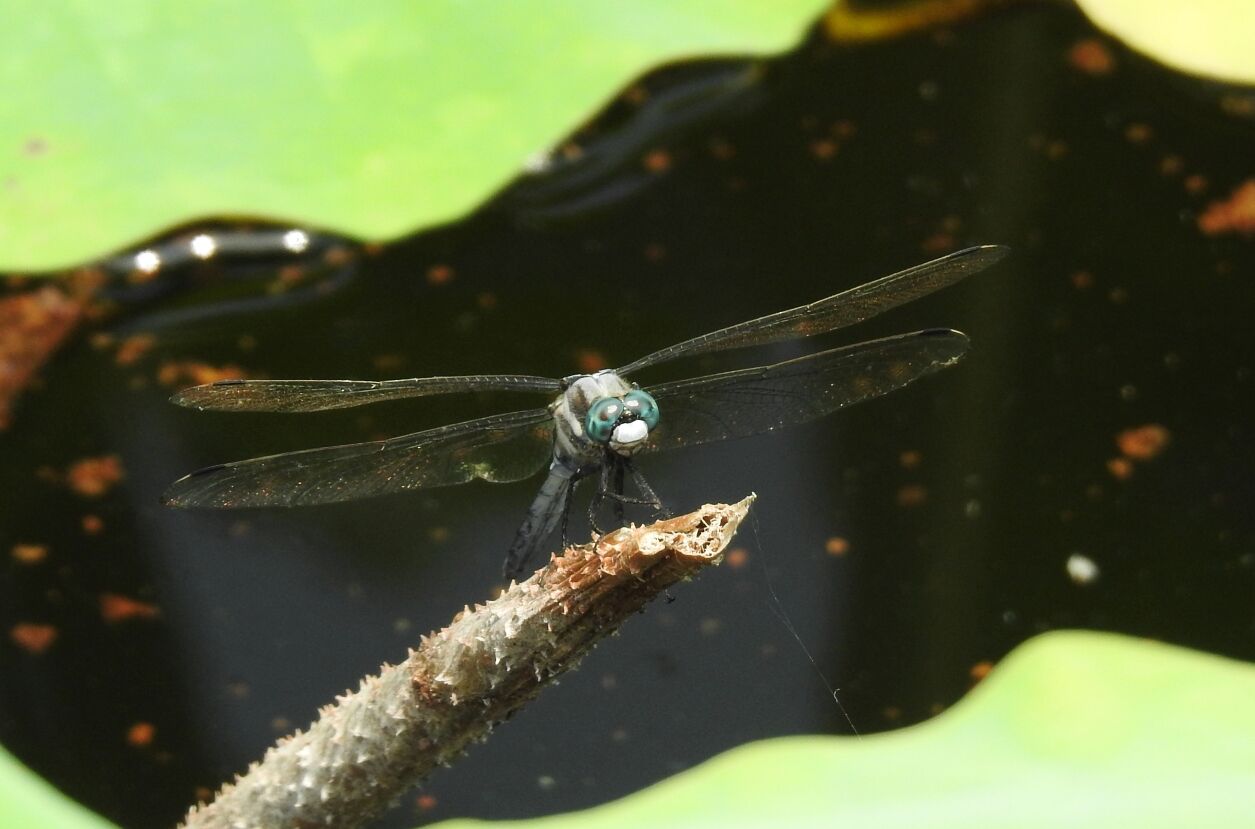この季節からトンボ君が池の端を飛び回ります。空中でホバリングしている姿が撮れませんでした。また今度にしましょう。